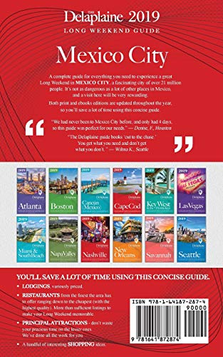 A complete guide for everything you need to experience a great Long Weekend in MEXICO CITY, a fascinating city of over 21 million people. It's not as dangerous as a lot of other places in Mexico, and a visit here will be very rewarding. Updated throughout the year, this concise guide will save you a lot of time. "We had never been to Mexico City before, and only had 4 days, so this guide was perfect for our needs." ---Denise, F., Houston "The Delaplaine guide books 'cut to the chase.' You get what you need and don't get what you don't." -Wilma K., Seattle =LODGINGS, from budget to deluxe = RESTAURANTS, from the finest the area has to offer ranging down to the cheapest (with the highest quality). More than sufficient listings to make your Long Weekend memorable. =PRINCIPAL ATTRACTIONS -- don't waste your precious time on the lesser ones. We've done all the work for you. =SHOPPING - some interesting out of the way places.